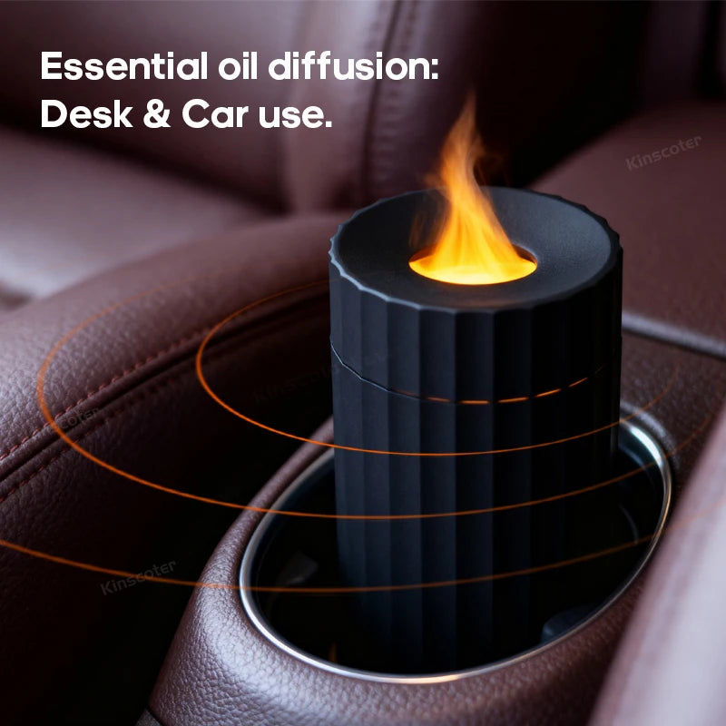 Design mit doppeltem Verwendungszweck: Dieser Flammen-Aroma-Diffusor eignet sich sowohl für den Auto- als auch für den Heimgebrauch, sodass Sie überall Aromatherapie genießen können.