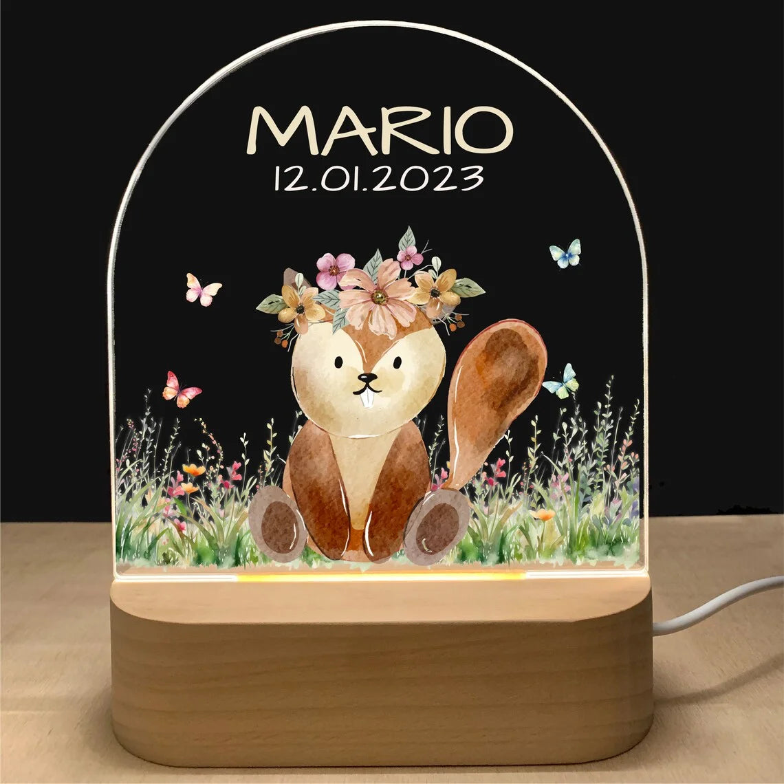 Personalisierbares Baby Nachtlicht mit USB & Holzbasis